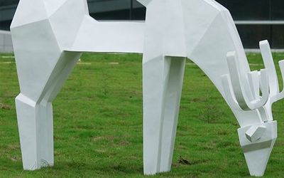 几何块面?玩儿的是抽象派!说白了,就是用方方、圆圆、三角这些基本几何体,拼出个大致意思。啥材料都能玩这套,但目前最主流的是两种:金属家族(不锈钢板、镀锌板、铁板),或者玻璃钢。