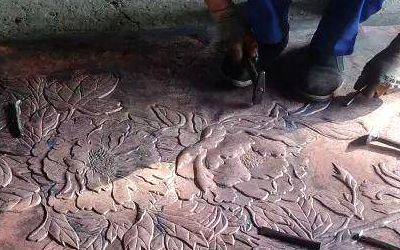 锻造(咱们这儿特指锻铜)——嘿!这可是体力活加技术活!拿铜板当画布,锤子当画笔,全靠师傅一锤子一锤子敲打出来的!尤其是浮雕、壁画这类讲究深浅效果的,这手艺绝了!纯手工的精细活儿。