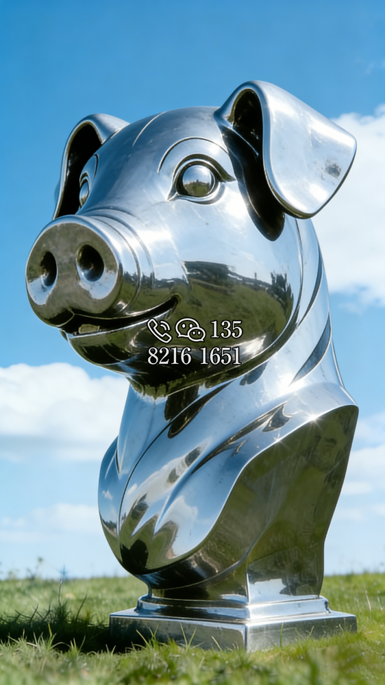 不锈钢 镜面 十二生肖 动物 猪头 胸像