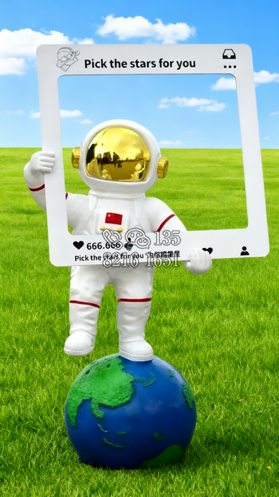 宇航员 航天员 踩地球上举着相框 拍照打卡