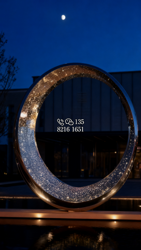 玻璃钢材质,仿陶罐,大型流水景观雕塑。总高6米,顶部陶罐长1.26米,中间主体陶罐高4.1米,去除底部一圈陶罐和外部飘带造型,内置水管水泵,水被抽入顶部陶罐,再从陶罐口留出,形成水流源源不断永远流不完的错觉。