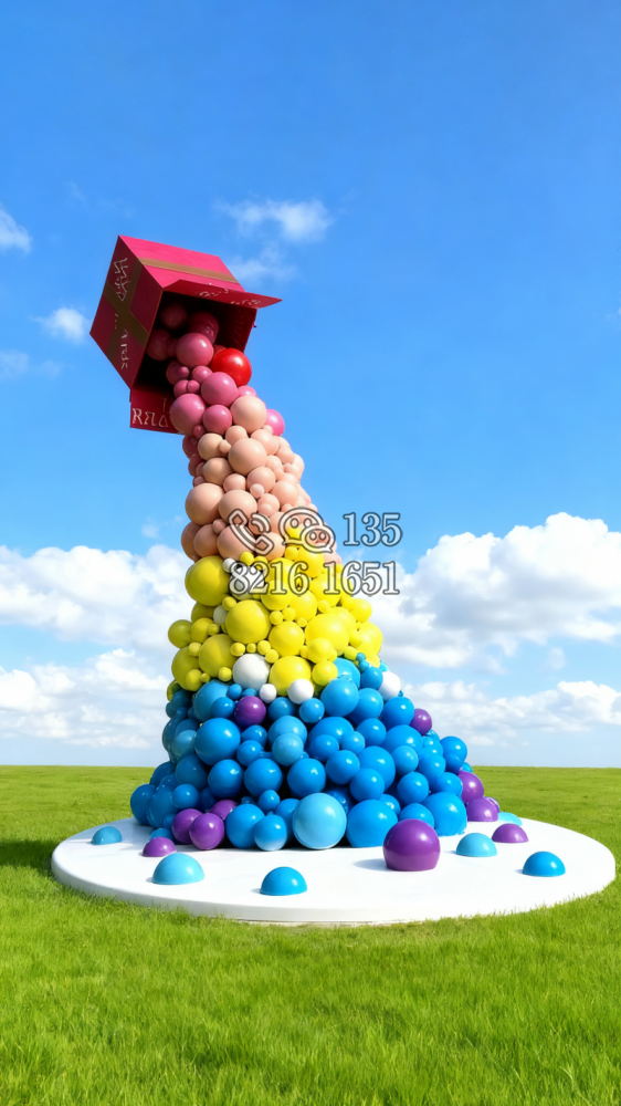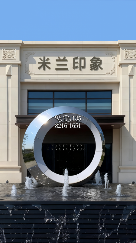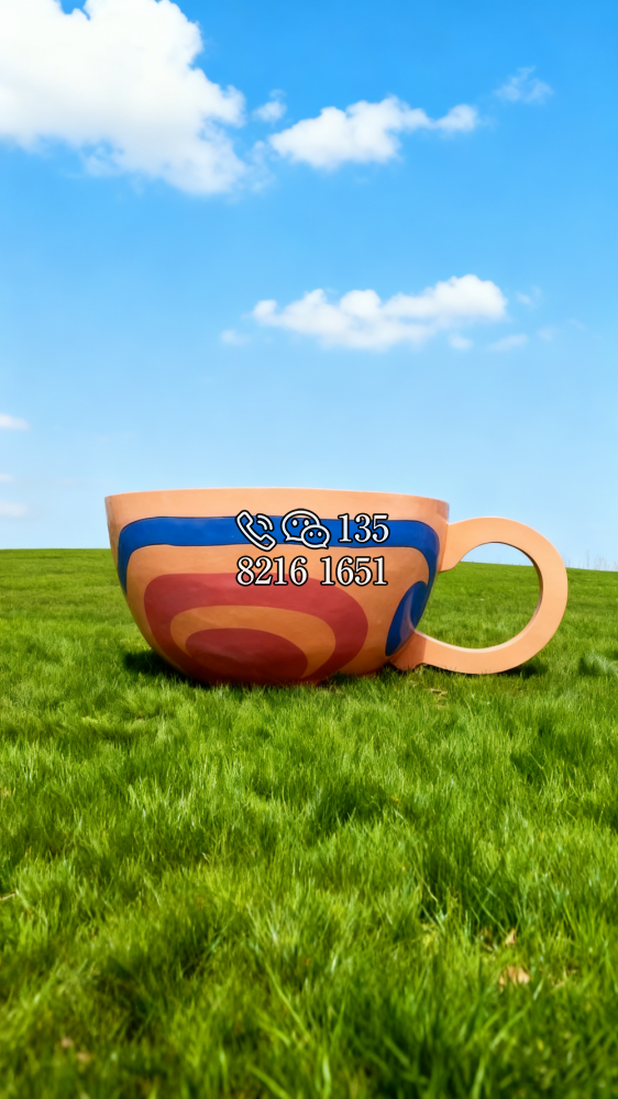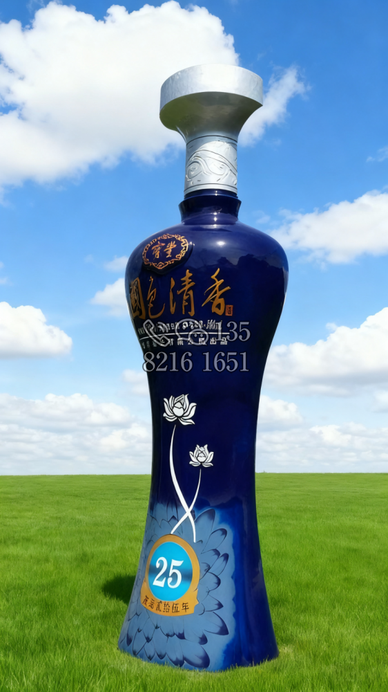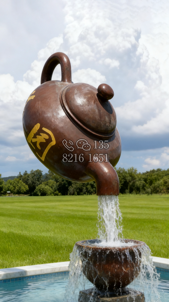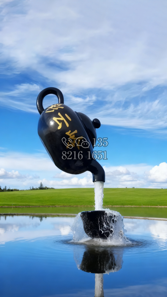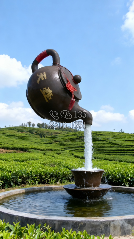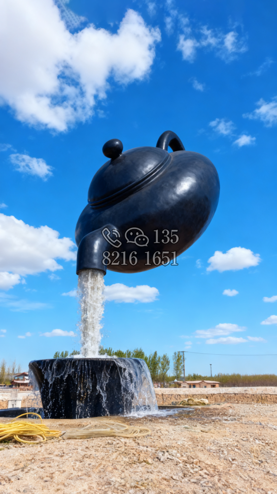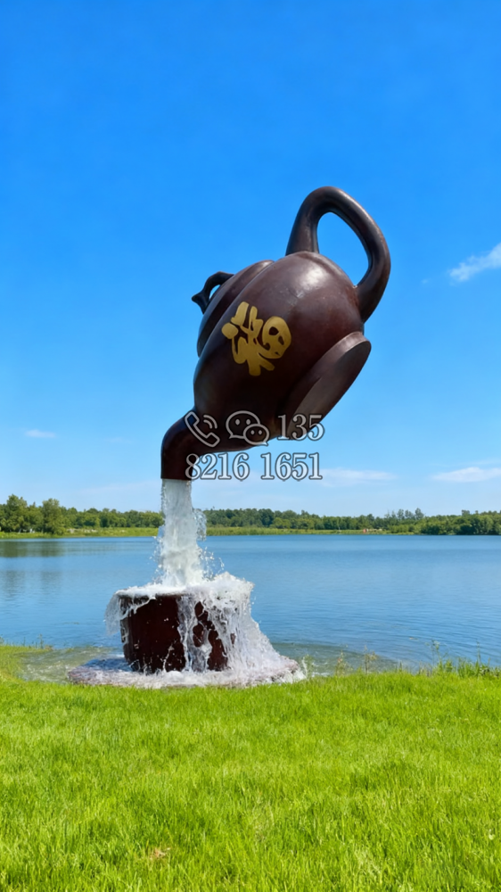玻璃钢材质,仿陶罐,大型流水景观雕塑。总高6米,顶部陶罐长1.26米,中间主体陶罐高4.1米,去除底部一圈陶罐和外部飘带造型,内置水管水泵,水被抽入顶部陶罐,再从陶罐口留出,形成水流源源不断永远流不完的错觉。
