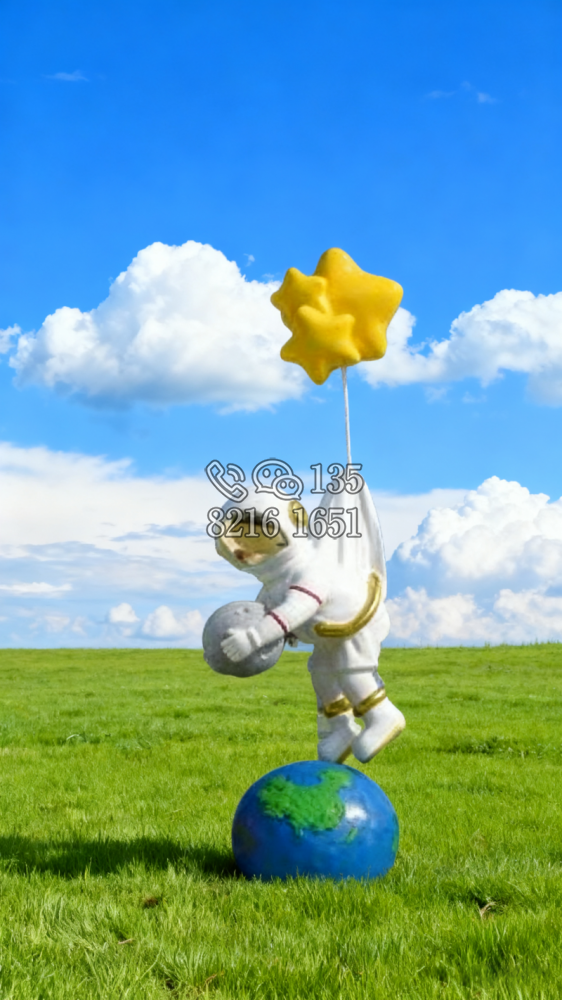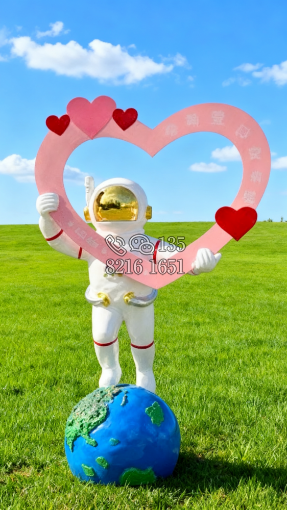 宇航员 航天员 踩地球上举着相框 拍照打卡