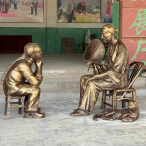 老奶奶讲故事 玻璃钢仿铜民俗生活人物