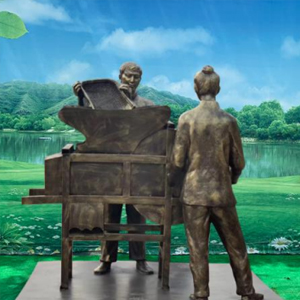 玻璃钢仿铜老鹰捉小鸡人物雕塑