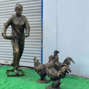 农妇喂鸡 玻璃钢